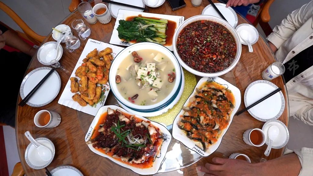 “赛前半月订餐的电话就一直没断过。”赵建国说,整个“五一”假期,平均日接待量超过了400人次,一多半都是外地的,翻台率较平日激增了3倍,把厨师和服务员都累得够呛,他和妻子也成了这里的服务员。除堂食外,饭店自制的麻辣鱼肠、鲟鱼熏肉等产品也倍受顾客青睐,供不应求。