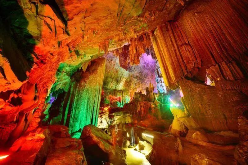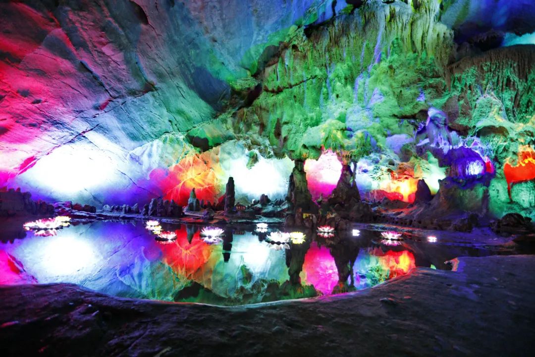 勾漏洞洞内,梦幻光影与钟乳奇观相融。