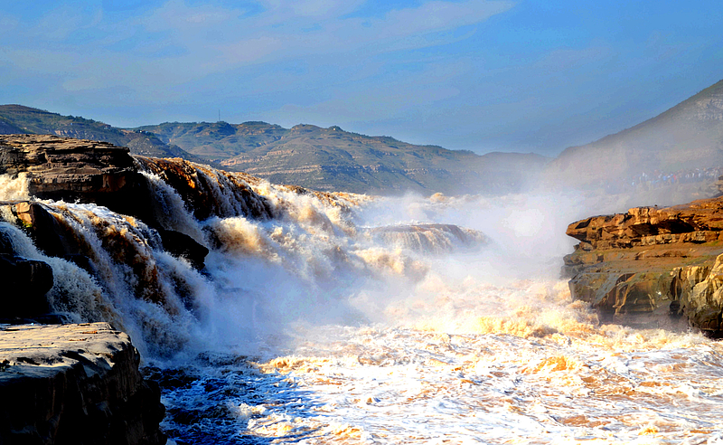 上午:迎着晨曦出发,前往世界闻名的黄河壶口瀑布。黄河在这里奔腾呼啸,河水倾泻而下,形成巨大的瀑布群,水雾弥漫,涛声震天,其磅礴气势令人心潮澎湃,您可以尽情欣赏这大自然的鬼斧神工,拍照留念 。