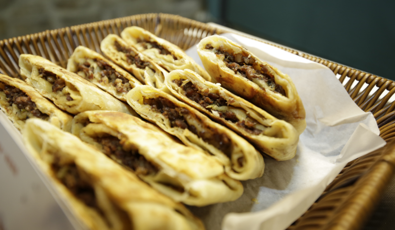 晨起可以品味酥皮藏鲜的泗水火烧,其形若长匣,外酥内绵。肉馅多汁,趁热咬下,油脂裹挟麦香;素馅则以豆腐葱花点睛,清雅中透出炭火焙烤的焦香。