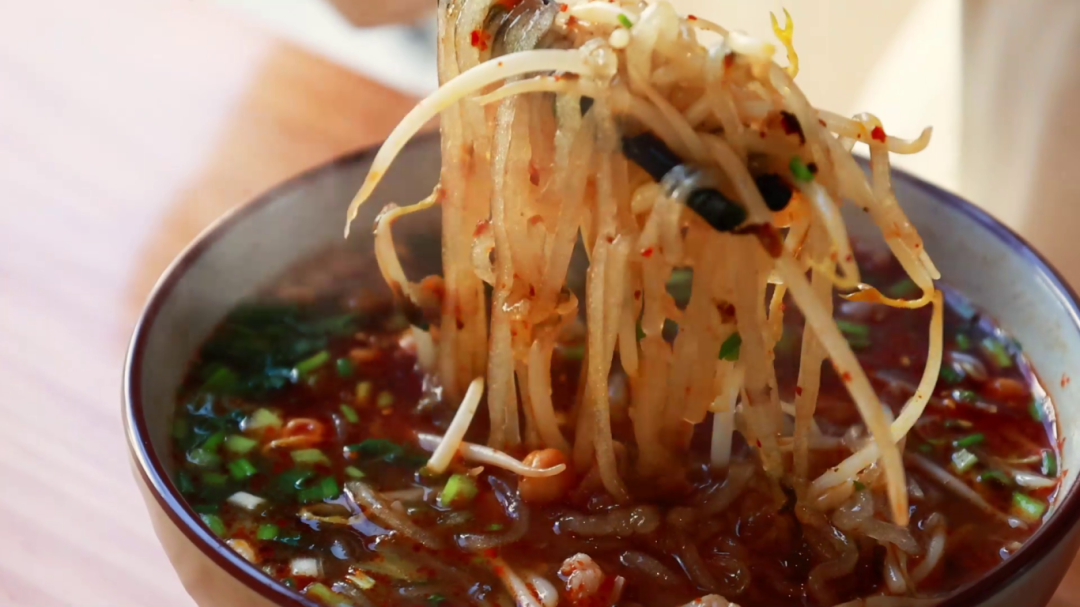 凭借优质地瓜原料,当地衍生出极具特色的虎咬瓜酸辣粉。粉条由地瓜淀粉精制而成,色泽透亮,入口爽滑劲道,在酸辣汤汁的浸润下,滋味浓郁,一口下去,舌尖满是酸辣鲜爽。