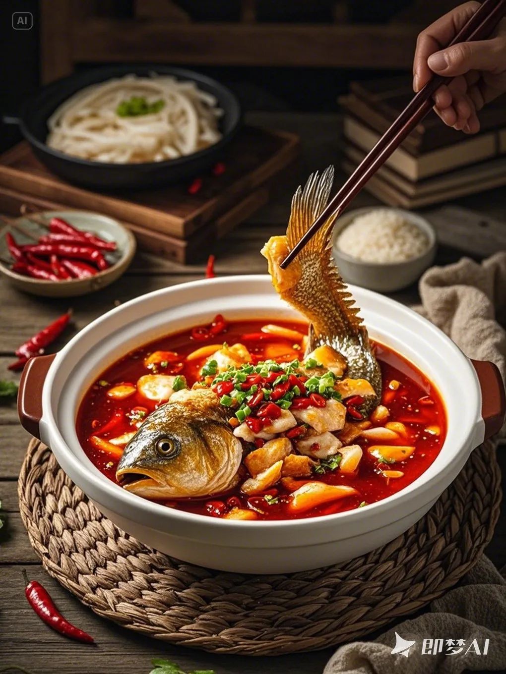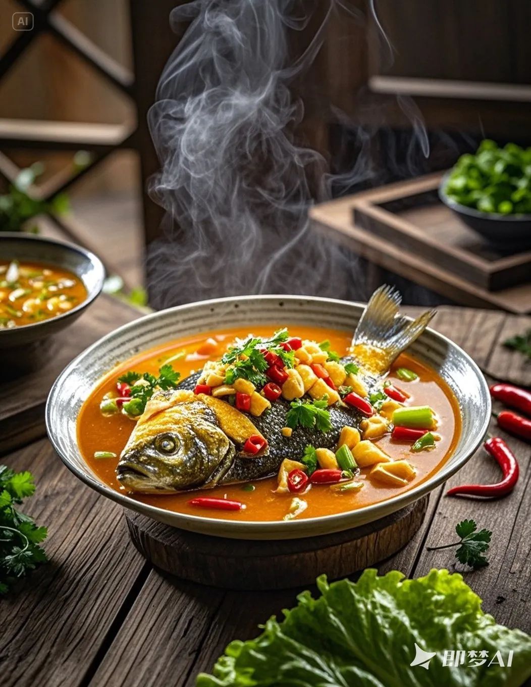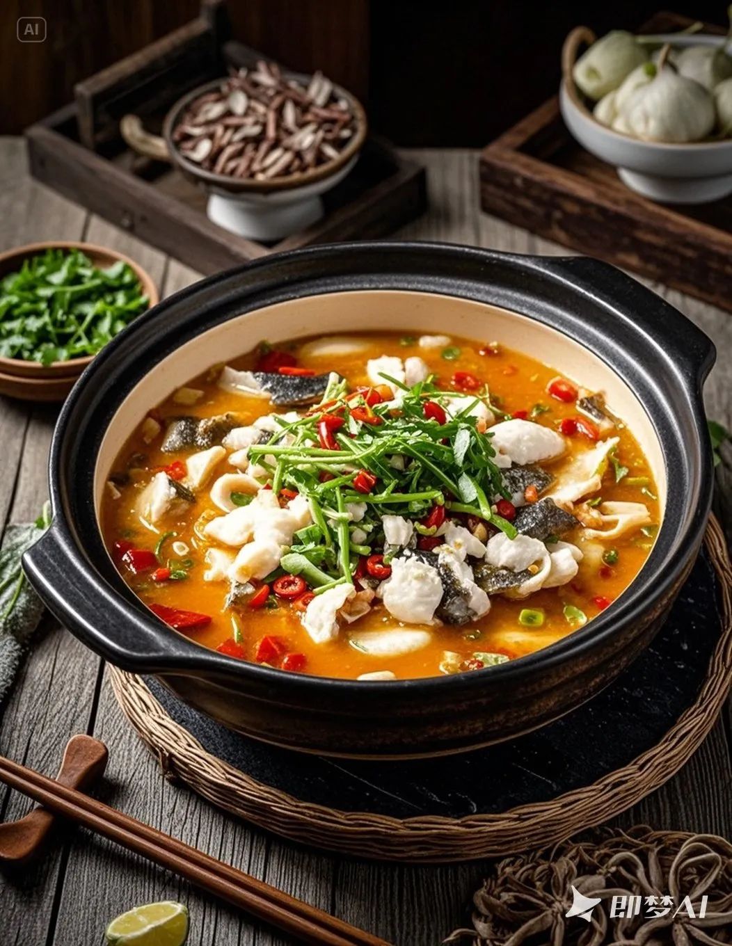 凯里酸汤鱼的酸汤分为白酸和红酸两种,红酸汤是以腌制的西红柿酱、糟辣椒等为原料,再加入多种香料熬煮而成。