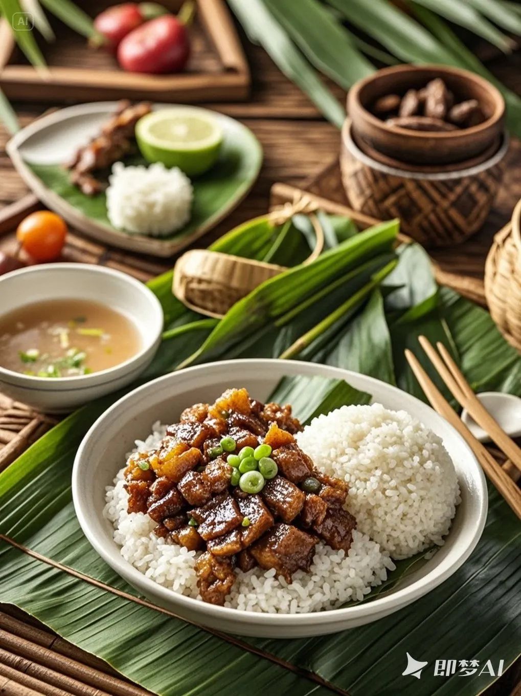 铜仁社饭用糯米混合青蒿、腊肉、野葱等蒸制而成,青蒿的清香与腊肉的咸香交织,香得hin。