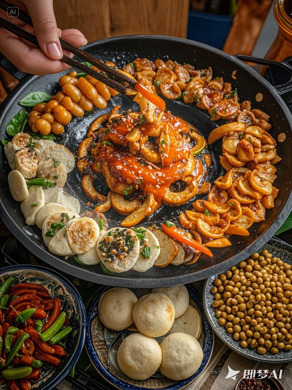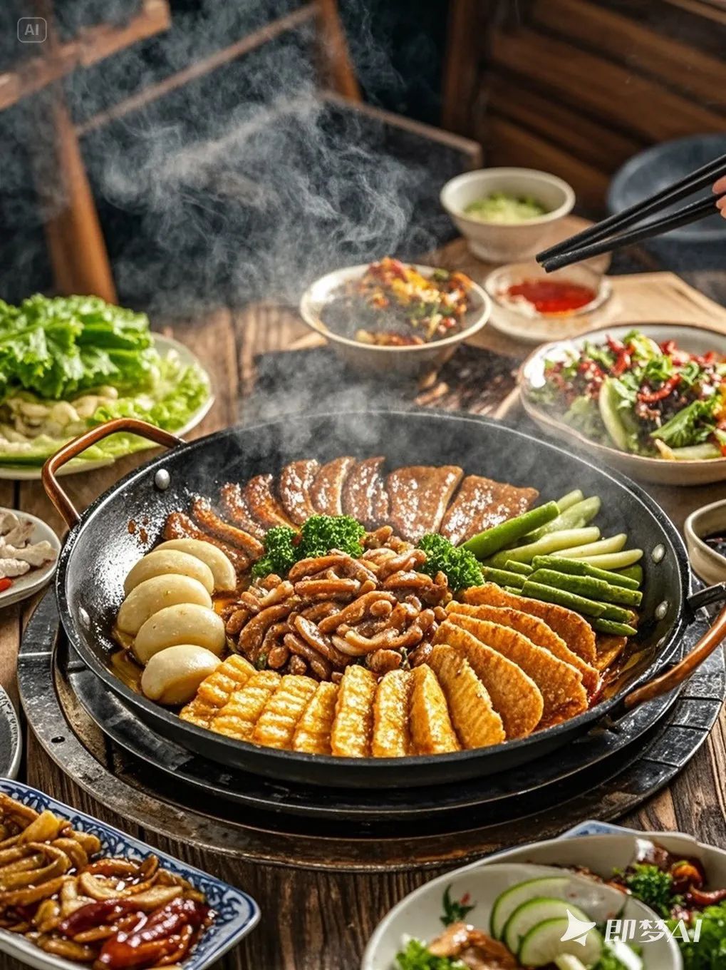传统水城烙锅是中间凸起来的,方便油往两边流,以免食材长时间泡在油里丧失口感。