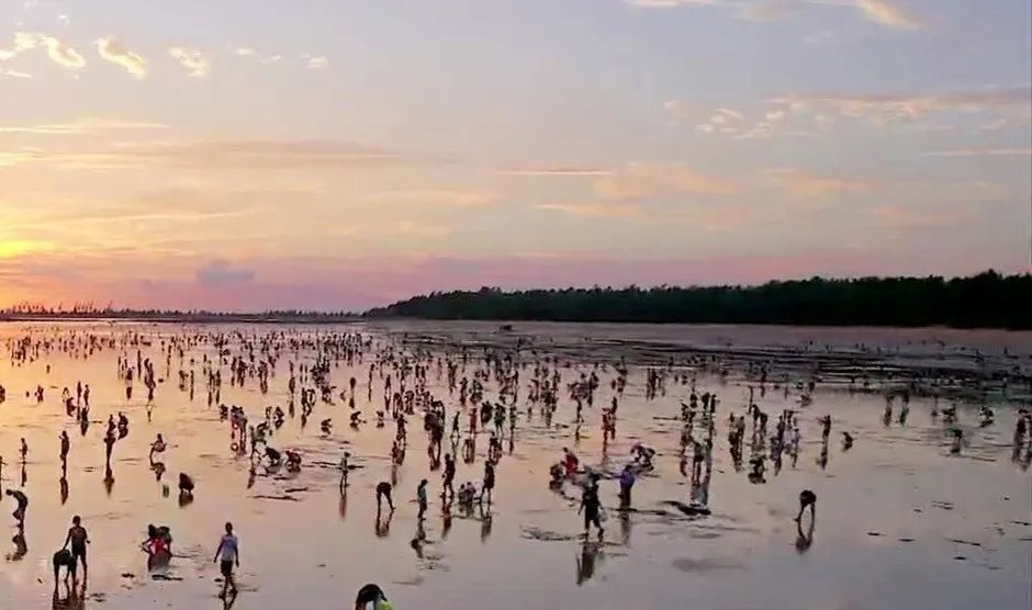 北海银海区下村位于北海半岛东南端,以原生态渔村风貌闻名。赶海特色鲜明,退潮时村民与游客手持工具,在滩涂上挖掘沙虫、捡拾螺贝,体验渔家生活乐趣,感受海风拂面的惬意。