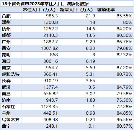 据不完全统计,内地共有27个省会,目前已有18地披露最新人口数据,去年人口全部正增长,18城人口增加超过120万人。