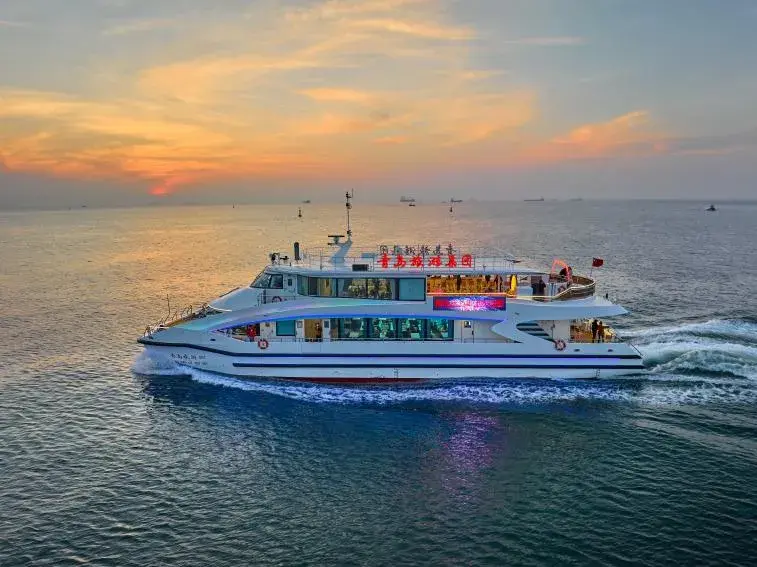 奥帆中心乘船,日间“钻石海”追光之旅,傍晚“橘子海”落日巡礼,暮色四合,游船化身灯光秀观景台,270°环幕视野囊括城市地标,实现视觉与听觉的沉浸式共振。