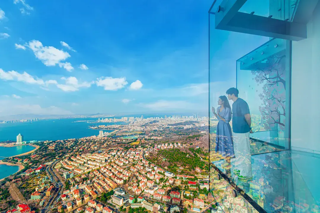 云端之上,俯瞰山海!82层观山海餐吧、81层360°全景玻璃厅、80层艺术殿堂。在325米高空,触摸青岛的脉搏,感受“垂直景区”的极致震撼!
