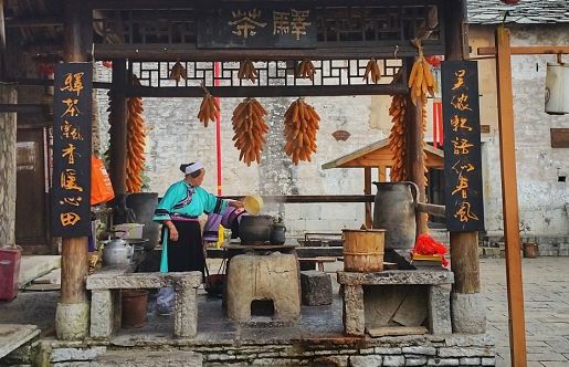 当地还人还保留着旧时的传统,穿戴传统服饰、发饰,在众多古镇中十分罕见。