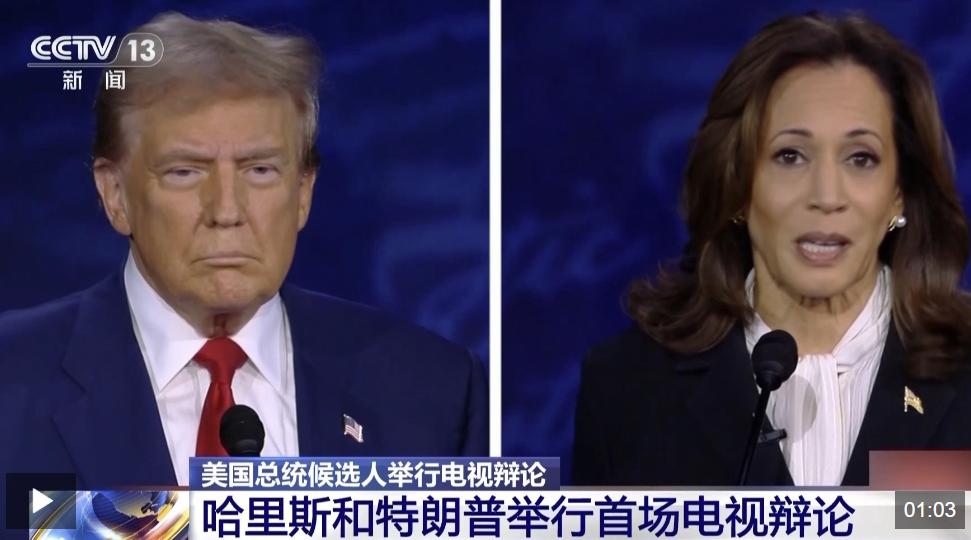 当地时间10日晚,美国民主党总统候选人、副总统哈里斯和共和党总统候选人、前总统特朗普在费城展开首场电视辩论。整场辩论持续了约90分钟,两人围绕美国经济、移民、堕胎以及俄乌冲突、巴以局势等问题展开辩论。