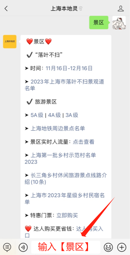 小编提示:微信搜索【上海本地灵】微信公众号,对话框回复【景区】即可获取现在上海5A级景区名单、4A级景区名单、3A级景区名单、景区实时人流量、上海各区免费景点信息、特惠门票购买入口等信息!