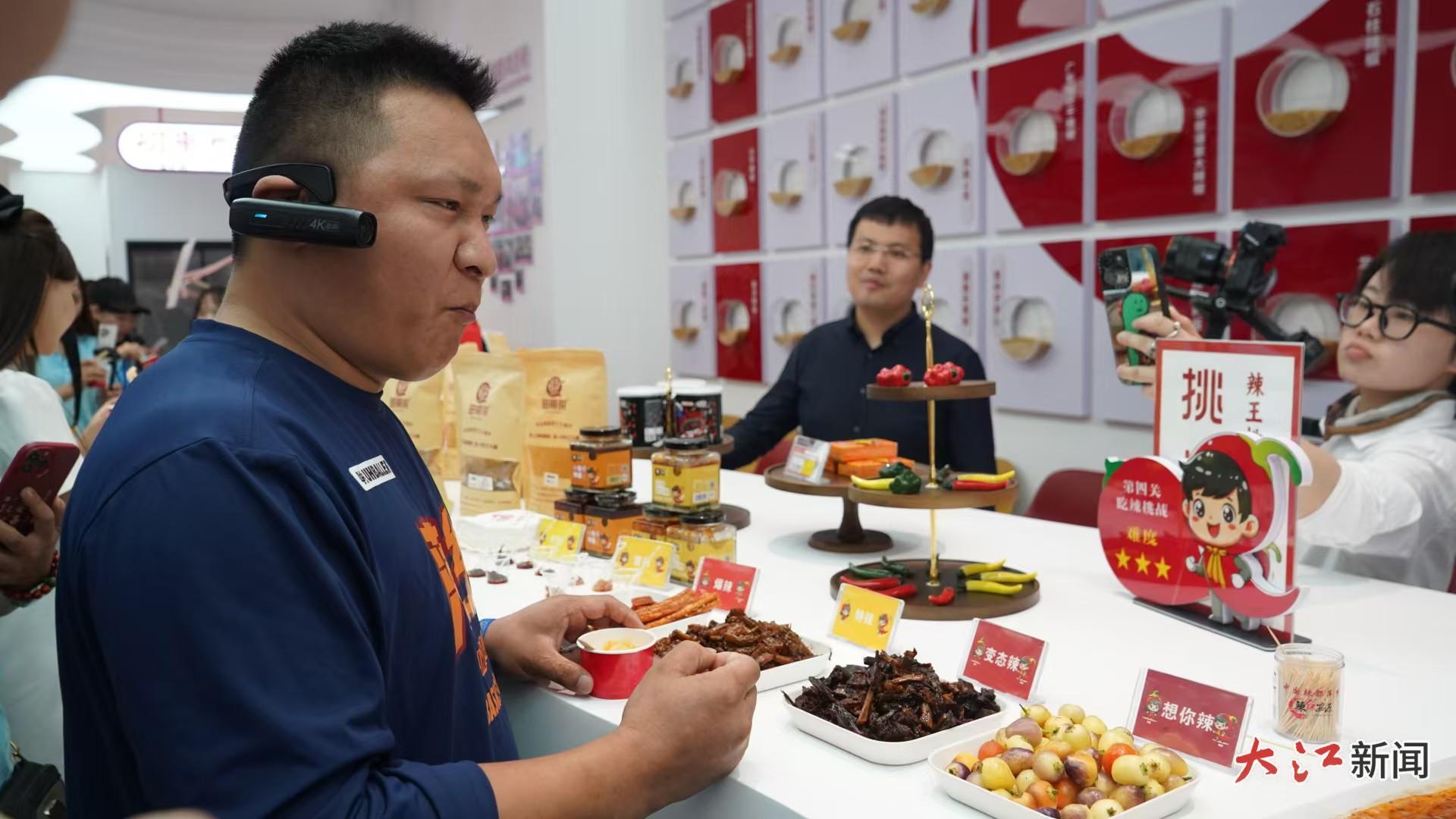 5月27日,“行神州‘播’天下”优质主播中国行江西站采访团走进位于萍乡安源的“中国辣都萍乡辣红安源”展示展销中心,从文创产品到精深加工制品,多元化的辣椒衍生品令采访团耳目一新。