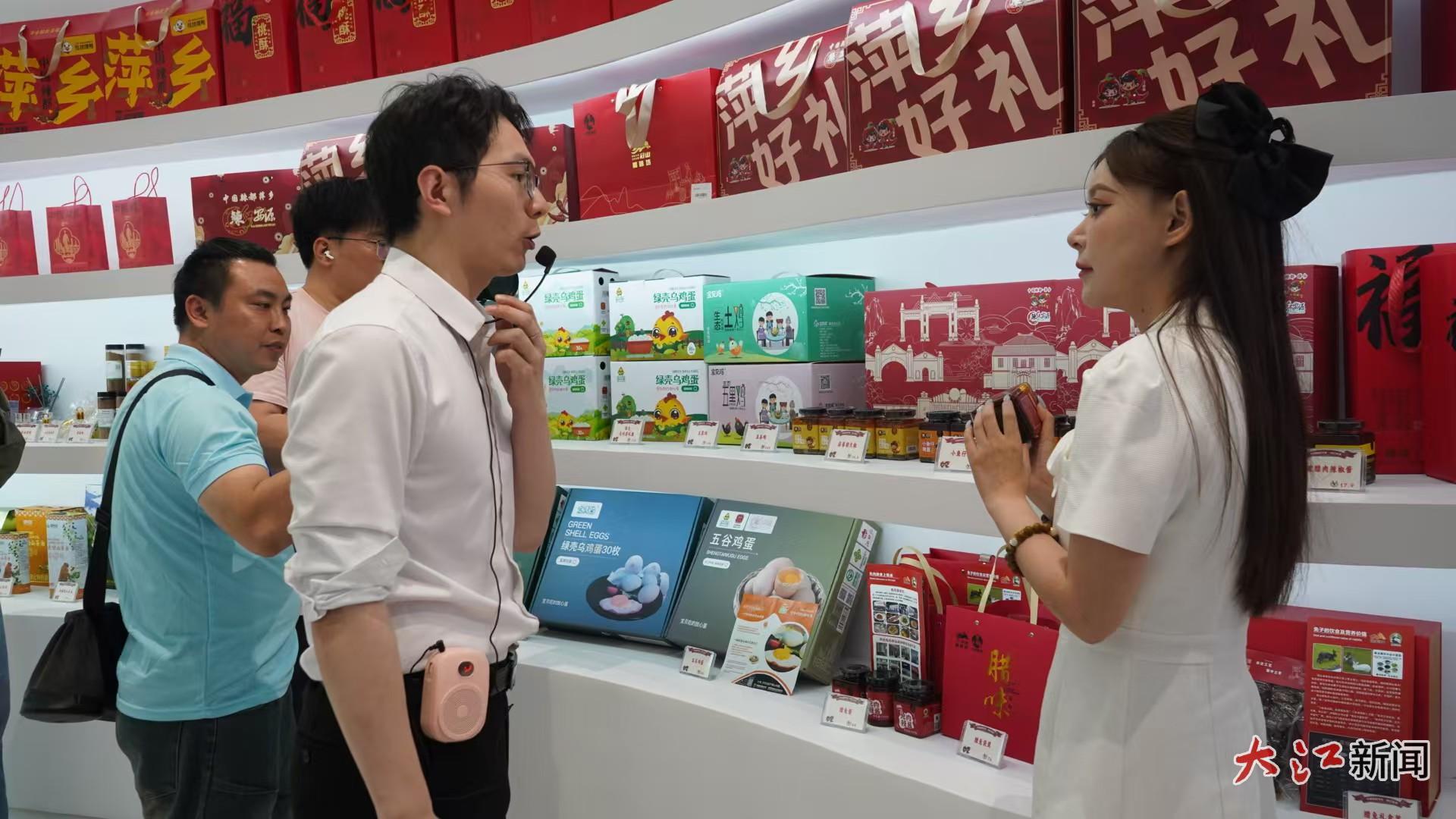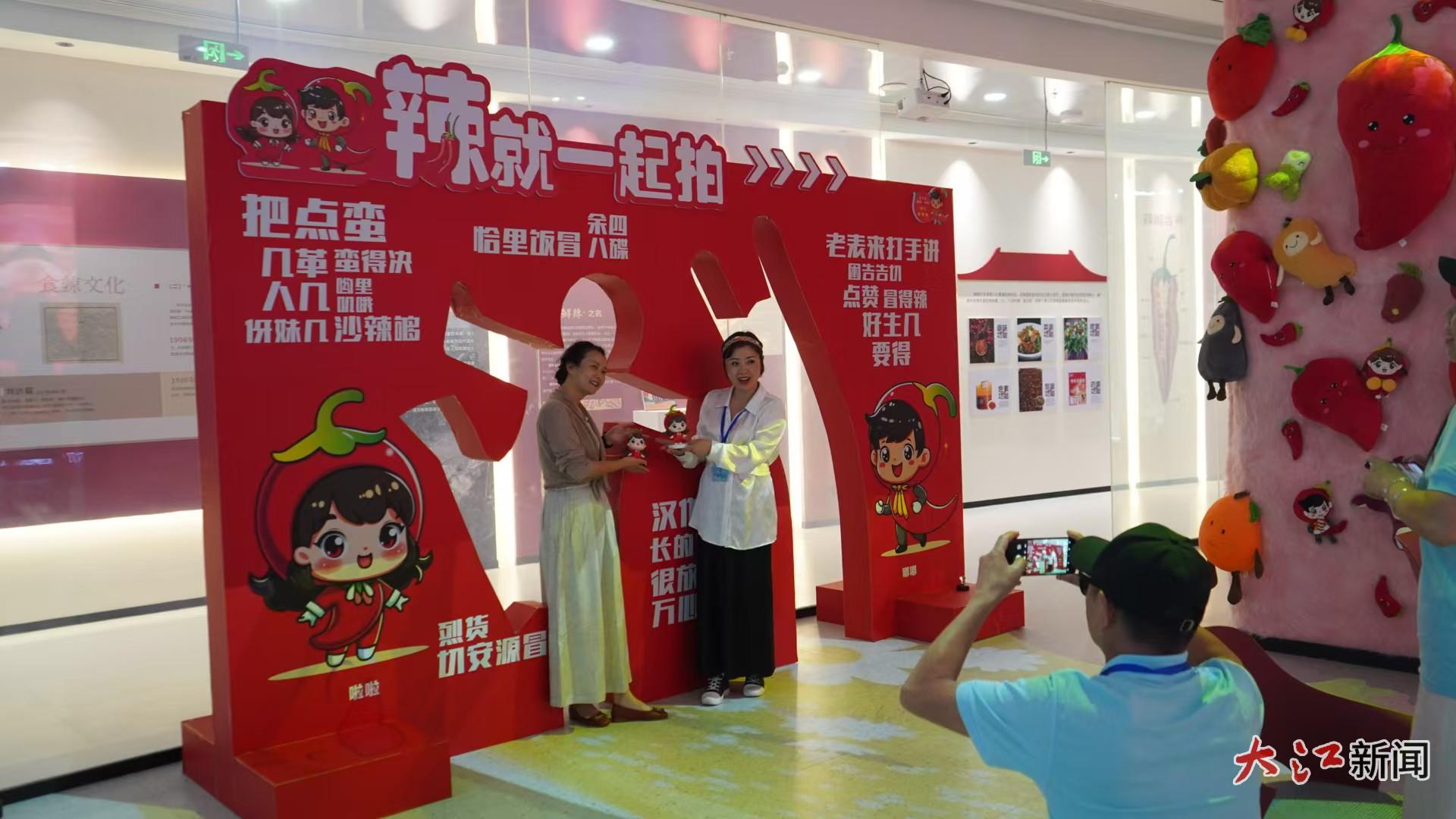 除了买礼品,展销中心还设计了拍照打卡墙、互动小游戏等区域,让人沉浸式感受当地的辣文化。