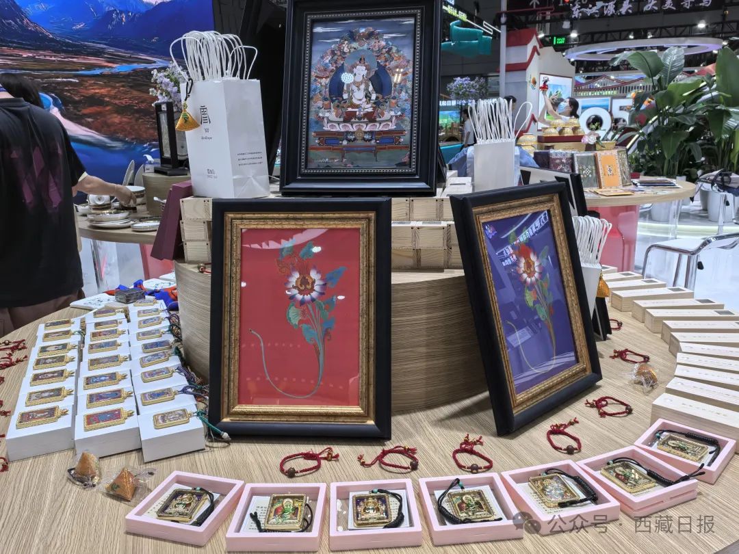 图为第二十一届深圳文博会上,西藏馆展出的唐卡文创产品。记者 杨小娟 倪微静 摄