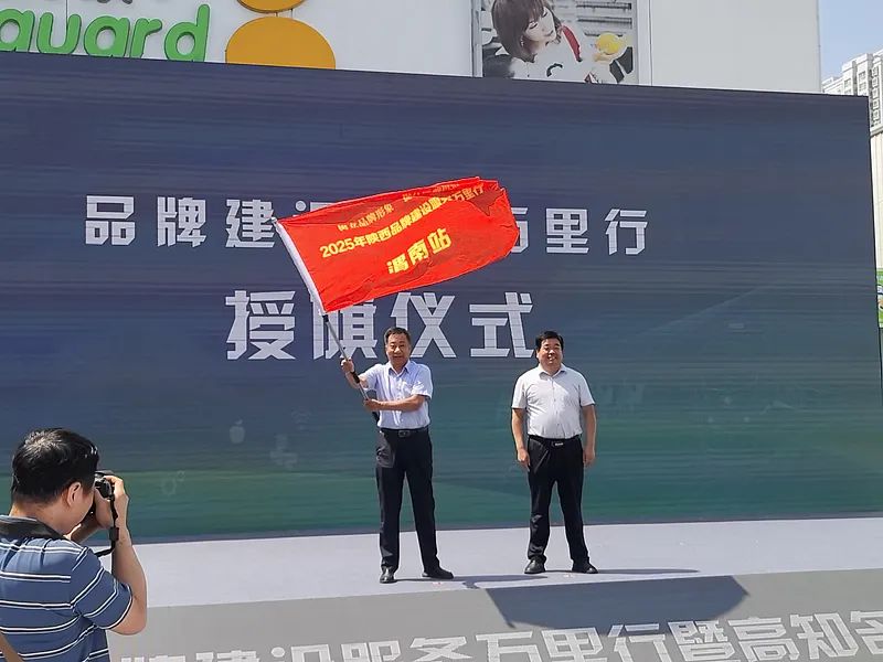 在2025年陕西品牌建设服务万里行暨高知名度品牌宣传推广活动启动仪式上,渭南市市场监管局接过“陕西品牌建设服务万里行”授旗,标志着全省品牌建设服务万里行活动在渭南拉开序幕。