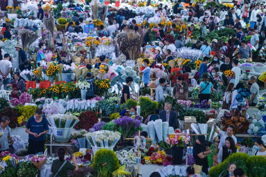 要知道,全国每10枝鲜切花中就有7枝来自云南斗南!斗南在全国鲜切花的相对市场份额超过70%。如今的斗南,已形成以全国唯一一家国家级花卉交易市场和亚洲第一、世界第二的花卉拍卖中心等两家龙头企业为核心的花卉产业集群,鲜切花交易量、交易额、现金量、交易人次和出口额连续25年居全国第一。