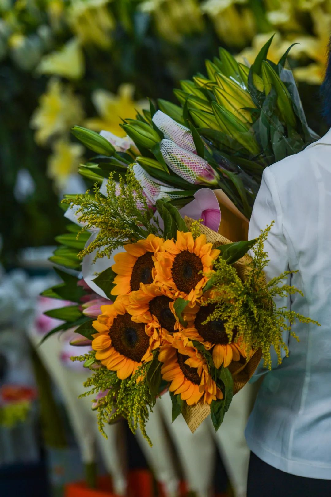 在斗南花卉市场,每天上市117类鲜花,有各类企业、经营户2200多家,发货商1000余户,物流企业46家,关联种植户8万多户,供货品牌近1.2万个,花卉经纪人1万余名,全国花卉批发市场和花店35万多家……