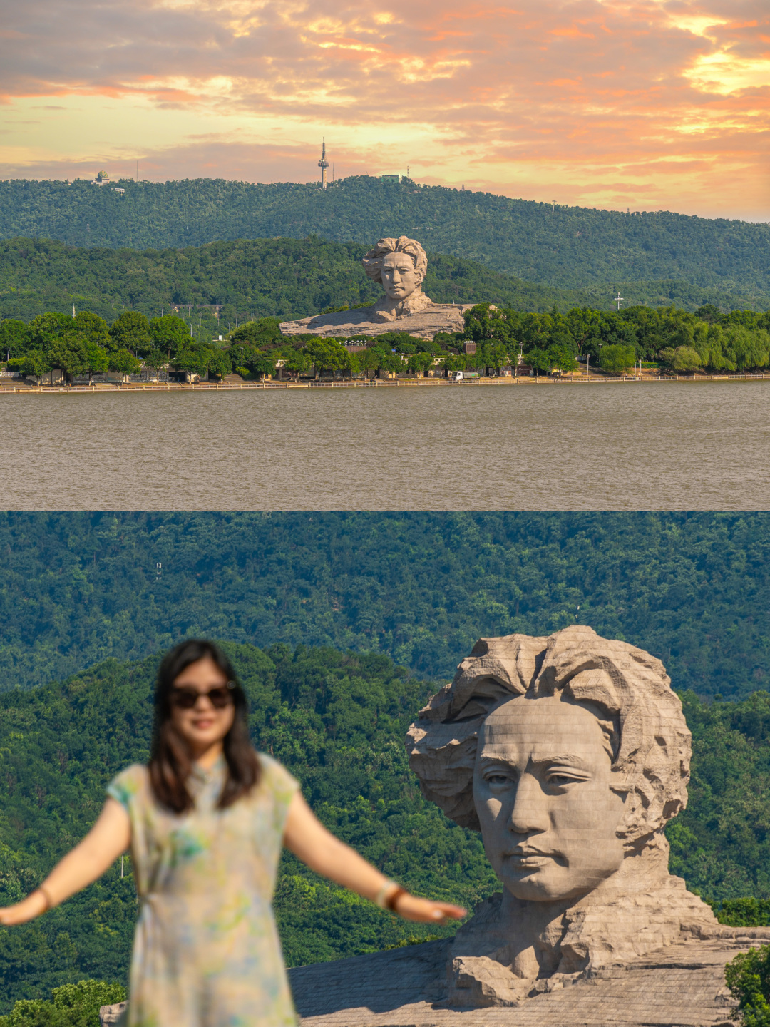 拍毛泽东青年雕像还站在橘子洲的人海里拍?