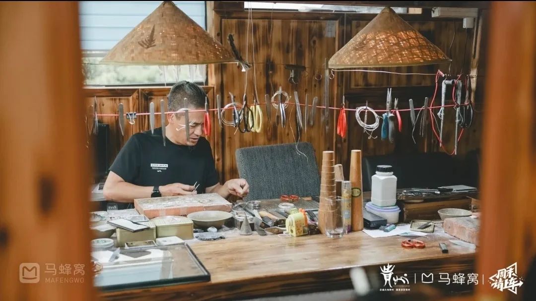 主理人潘仕学出身在一个银匠世家,现在是国家级非遗苗族银饰传承人。他注重传统工艺与现代时尚元素融合,通过互联网介绍苗族银饰锻制技艺,不但使自己成为了网红非遗传承人,还带领全村年轻人发展了非遗经济,脱贫致富奔小康。