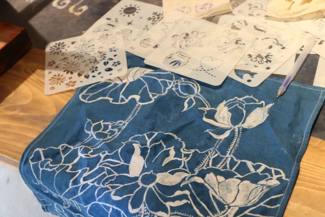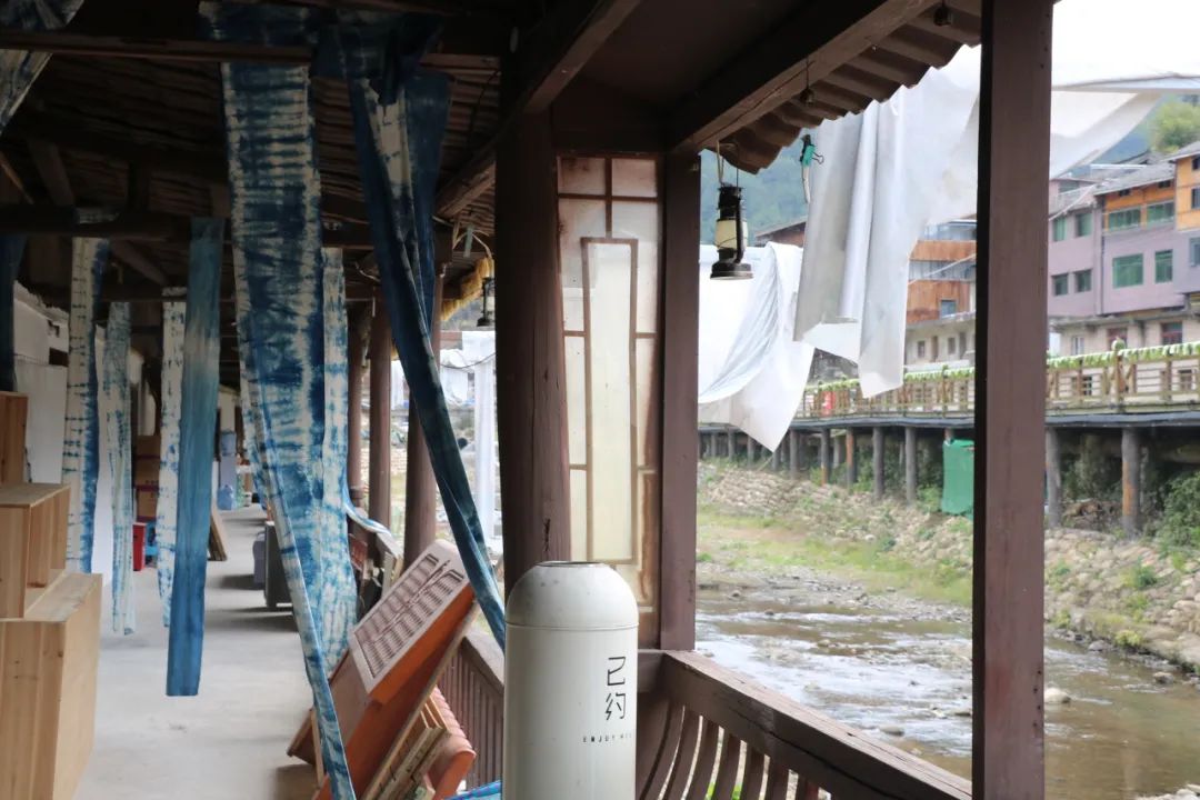 苗草田蜡染体验坊修建在一片油菜花田中,在依山傍水的店里做非遗蜡染,超级治愈,做好的成品都可以直接带走。