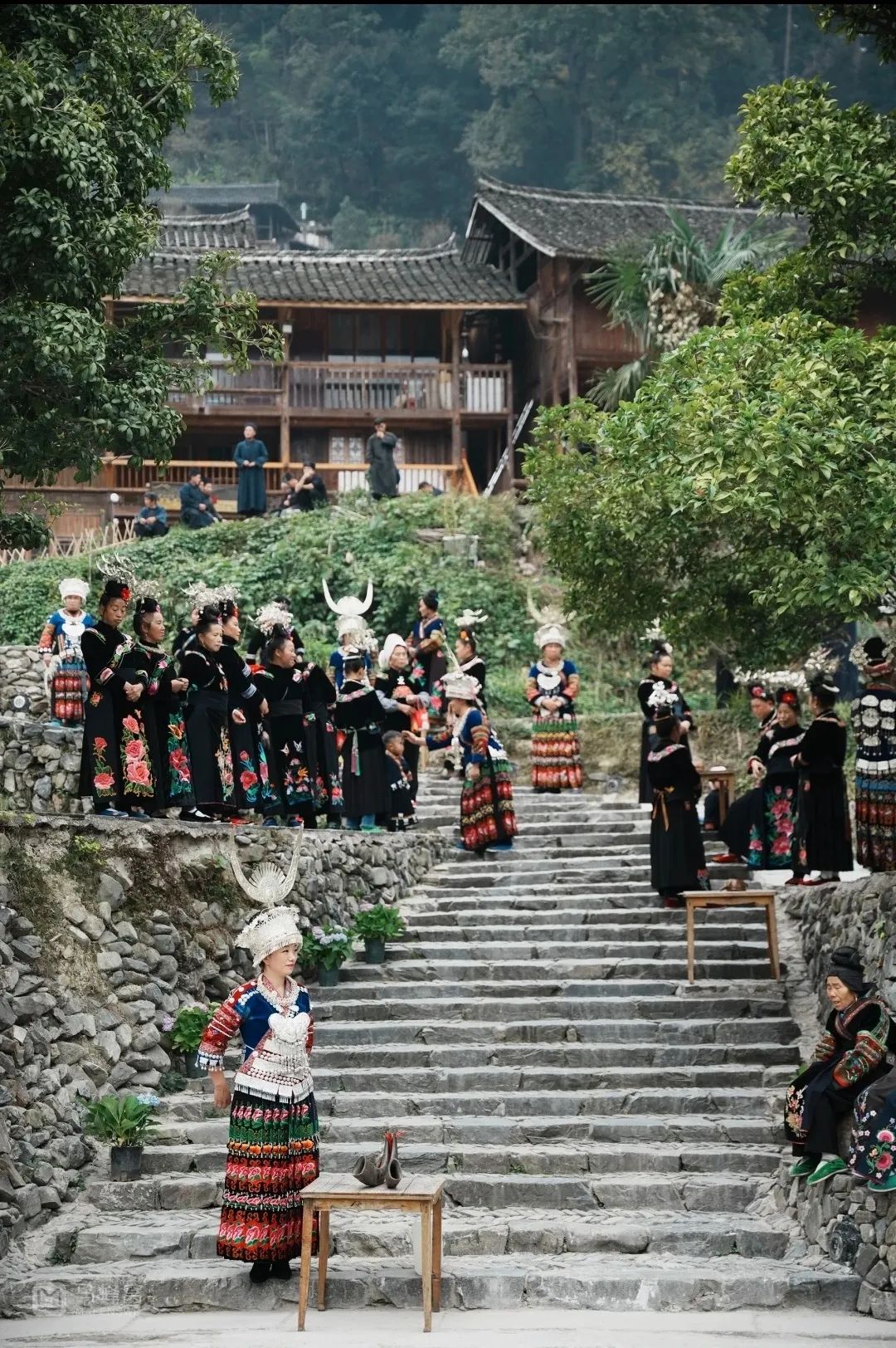 要是运气好,能遇上姑妈回娘家活动,那可千万别错过这个苗寨的传统活动。在苗族里,姑妈就是嫁出去女儿的意思。女儿们盛装回家,唱歌跳舞,打比赛,氛围一片祥和!