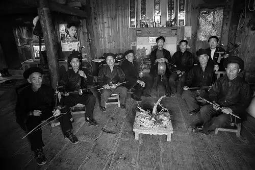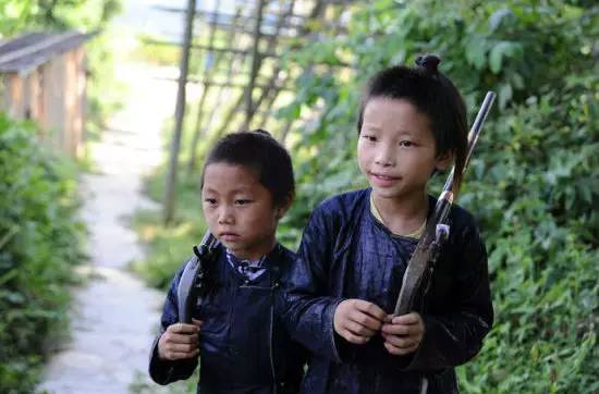 岜沙是一个纯苗族村寨,全村共5个寨子,至今还保留有浓郁的古代遗风和古老的生产方式。这里的男子头顶挽有发髻,穿着自织的无领右开衽铜扣青布衣,直筒大裤管青布裤,常年身挎腰刀,肩扛火药枪,颇有明清武士风貌。