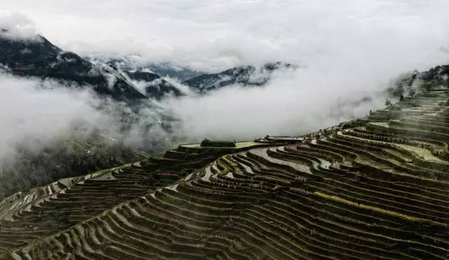 无论从局部还是整体形态来看,加榜梯田都吸取了天下梯田之精华,那居于梯田间的山村、小寨与梯田交相辉映,呈现的就是“人间仙镜、世外桃园”。
