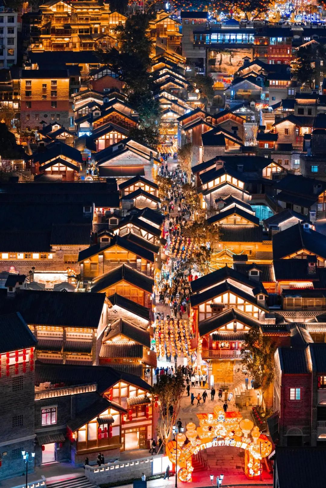洪崖洞位于渝中区嘉陵江畔,以传统的巴渝吊脚楼建筑、璀璨的夜景灯饰以及极具重庆特色的美食成为了闻名海内外的山城旅游名片。洪崖洞内移步换景,共有11层,层层景色不同,既可在吊脚楼内观洪崖滴翠,也可烫山城火锅看两江汇流,形成了“一态、三绝、四街、八景”的丰富经营形态。每当夜幕降临,灯光璀璨,繁华与古韵在夜色中交织,更加富有魅力。