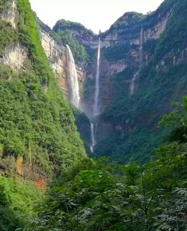 赏瀑---景区沿途分布着若干条的瀑布,特别是深入景区尽头,忽见一条水练从天而降,仰望天空竟不知水从何而来。这里就是景区另一大奇观,有亚洲第一落差叠水瀑布(落差491米)美名的五叠水景点。在瀑布下方,可远观三叠水瀑布,与对面山头数条群瀑交相辉映,多龙汇聚。而欲览五叠水全貌,还须登上栈道直至会当绝顶,叹大自然鬼斧神工。