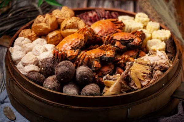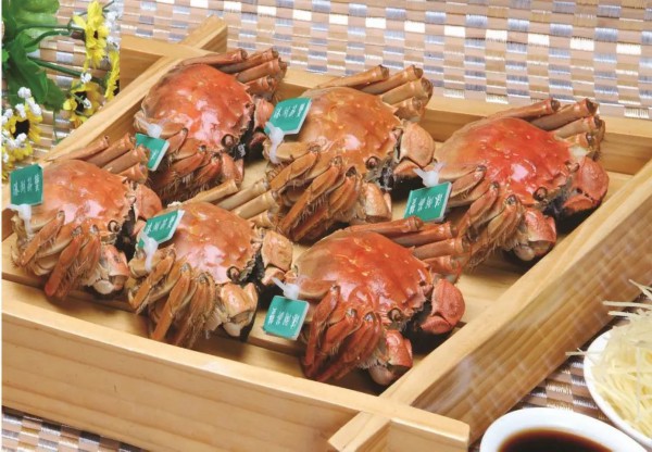 兴化市内湖荡密布,河道纵横交织,湖荡内水草丰美,为优质淡水螃蟹的生长提供了得天独厚的条件。兴化大闸蟹除了有普通螃蟹“青壳、白肚、金爪、黄毛”的特点外,还具有“膏红、肉鲜”的明显特征。其脂膏丰满纯正、肉质玉白爽嫩、蟹黄晶红油润,吃在嘴里,膏腴肥软嫩滑,鲜味足、香味足、甜味亦足,配上龙香芋籽、鱼圆、腊肉、杂粮窝窝头等,经蒸笼熏陶,便是一份诚意满满的团圆菜“蒸蒸日上”。