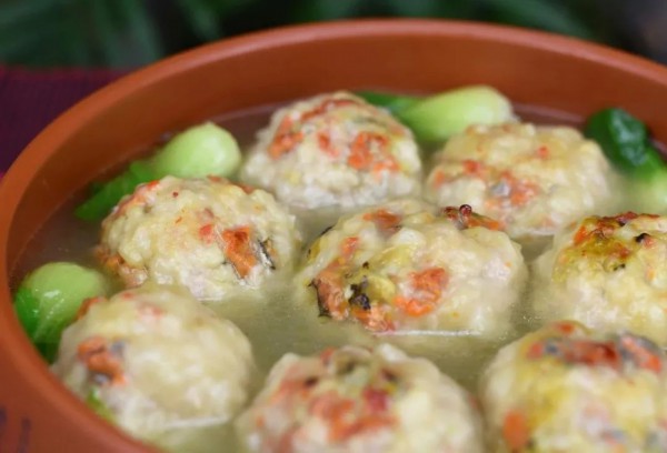 清炖蟹黄狮子头是淮扬菜系中的一道名菜,兼得猪肉之肥嫩与蟹黄之鲜香,入口即化。制作时将蟹黄狮子头生坯直接入汤锅中炖制。砂锅底垫入加工清洗后的猪肉皮和猪排骨,大火烧开,小火慢炖三小时。这样做成的清炖蟹黄狮子头,以菜心点缀,汤色一清到底。吃狮子头要用小汤勺吃,食后鲜香软嫩,齿颊留香,令人难以忘怀。