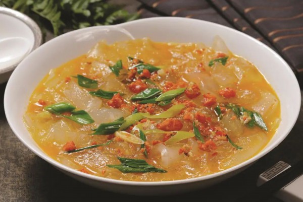 蟹黄粉皮,爽滑鲜香,老少皆宜。最地道的蟹黄粉皮,要精选泰州特有的绿豆鲜粉皮为食材,这种粉皮用独特工艺精制而成,韧性十足,不易黏糊,口感肥厚又滑爽。制作完成的蟹黄粉皮,不仅口感爽口,蟹味扑鼻,而且颜色黄白相应,看着就十分诱人。尝一口,简直要鲜美了一整个秋季。