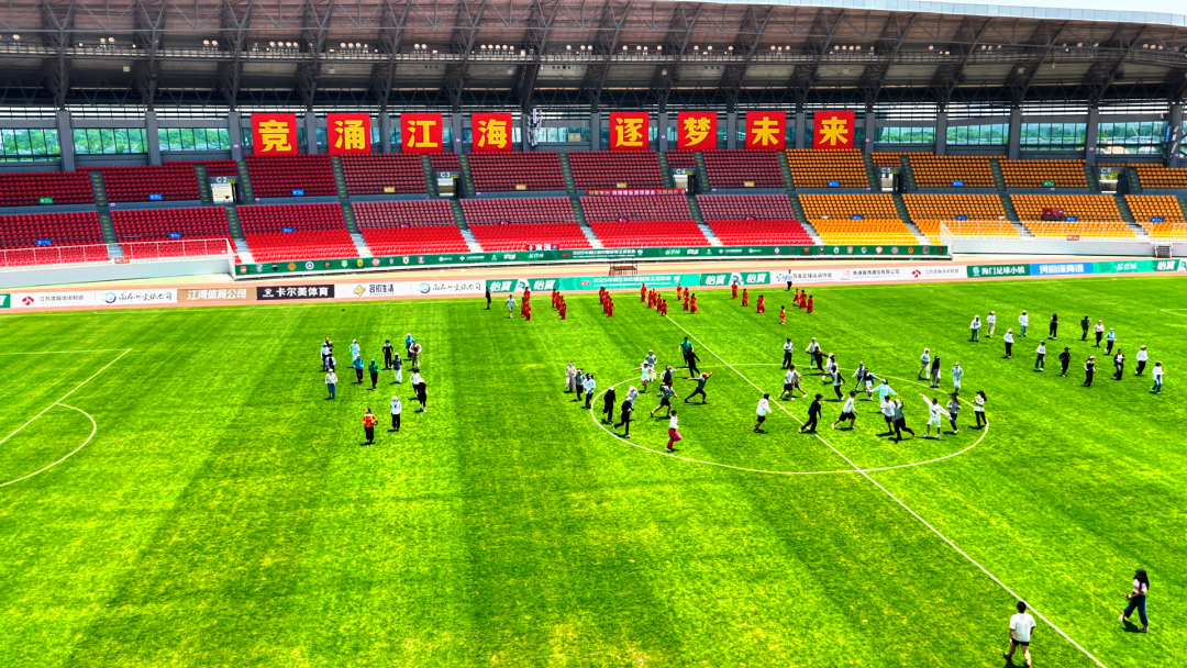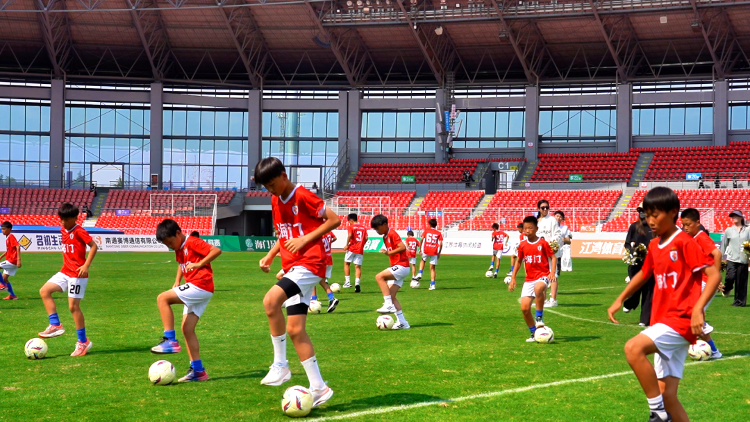 而在中场休息的黄金时段,南通足球训练中心海门基地青训足球队的50名“小球星”,将化身绿茵精灵,带来萌趣十足的足球秀《万众一心》。他们头戴毛茸茸的狼形帽子,在绿茵场上尽情驰骋。脚尖灵活地踮起足球,时而轻巧盘带,时而精准传球,一连串娴熟的动作,仿佛在绿茵场上书写着中国足球的未来。