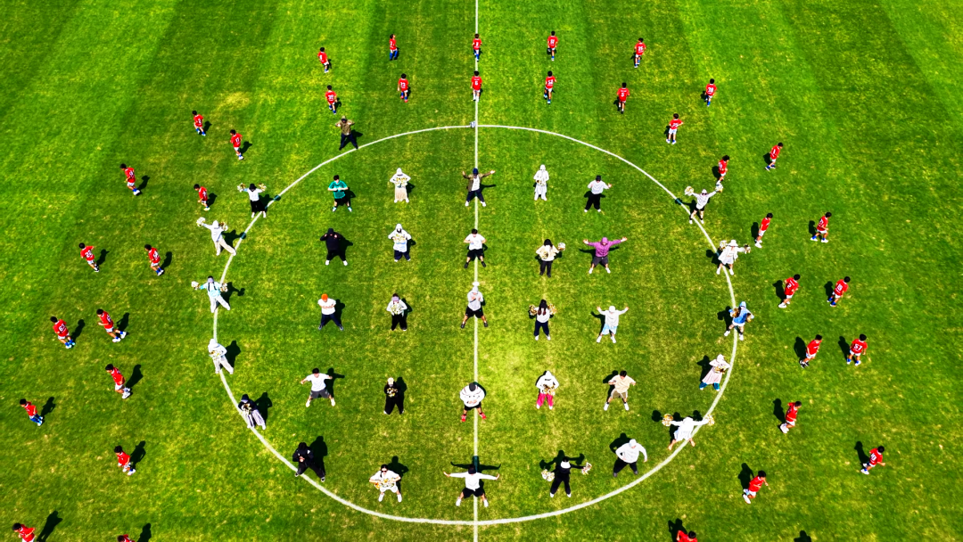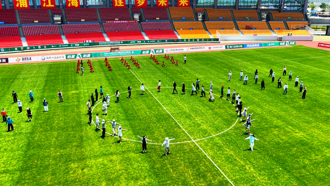 6月27日上午,记者踏入南通足球训练中心海门基地彩排现场,即刻被热浪与热情交织的氛围感染。烈日下,演职人员的额头沁满汗珠,汗水浸透衣衫,但他们毫不在意,全神贯注地跟随导演指令,一遍遍调整站位、校准动作,只为正式上场时呈现最完美的舞台效果。