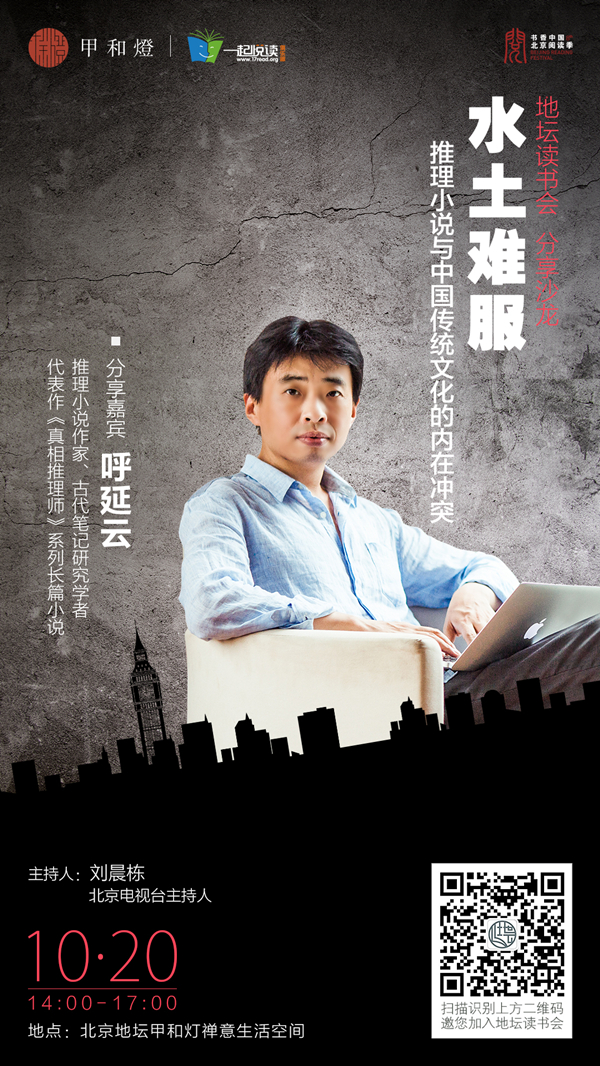 10月20日下午,地坛读书会·分享沙龙特邀推理小说家呼延云,通过对中国传统公案小说和经典推理小说在叙事结构、创作技巧、诡计设置、逻辑推演等方面的比对,结合个人创作中的反思和探索,探求推理小说与中国传统文化内在冲突的根本原因。