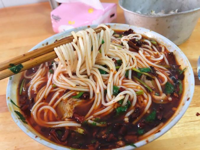 浸满汤汁与煳辣椒香的牛肉粉。周雅萌 摄