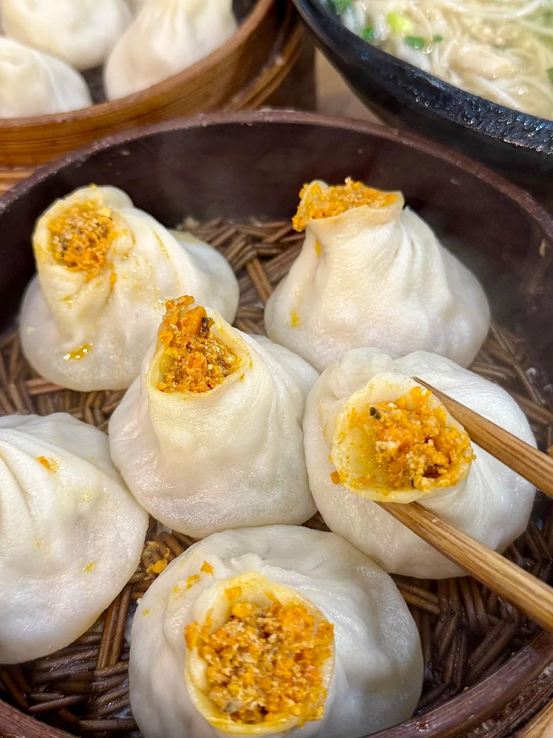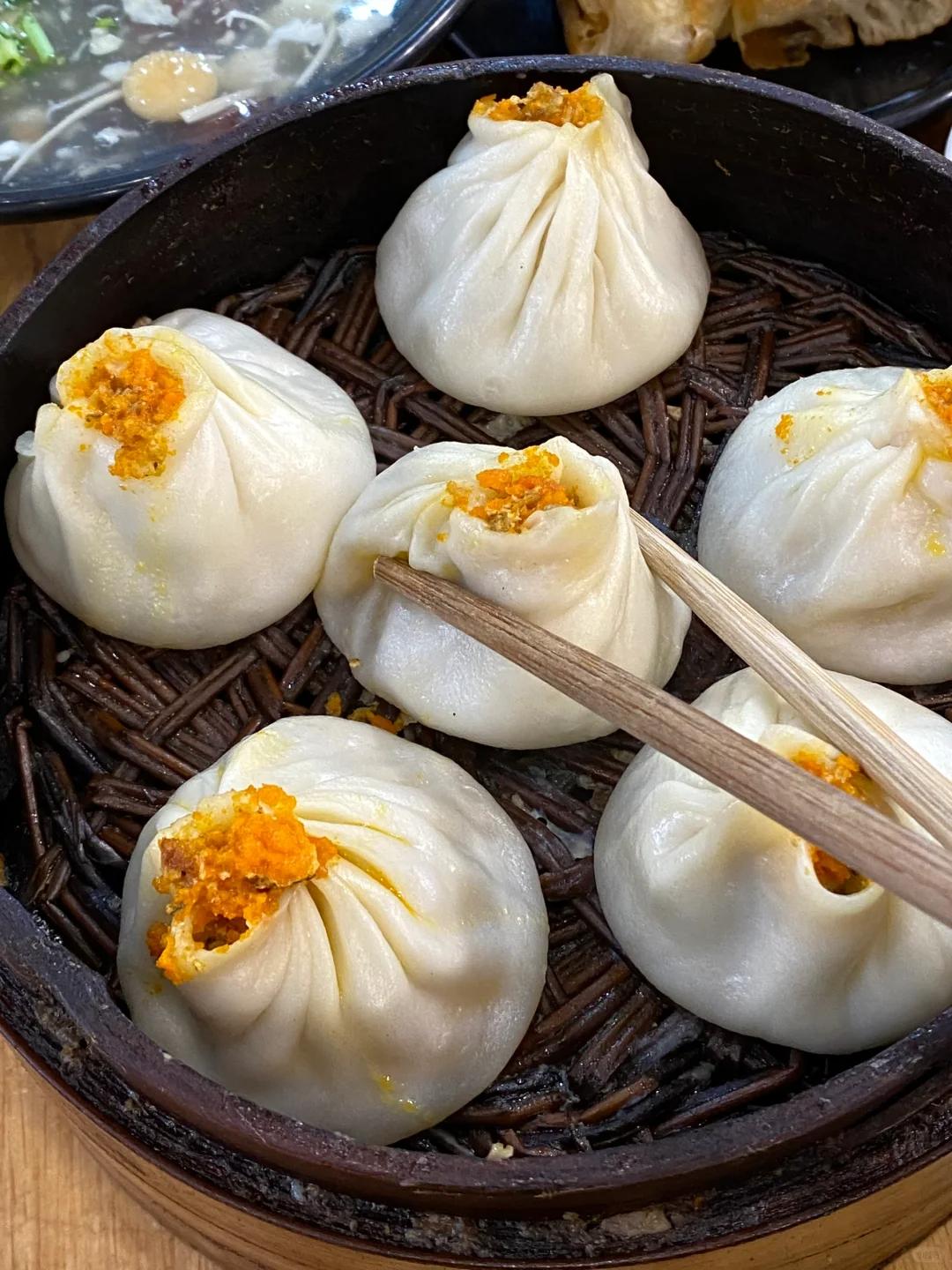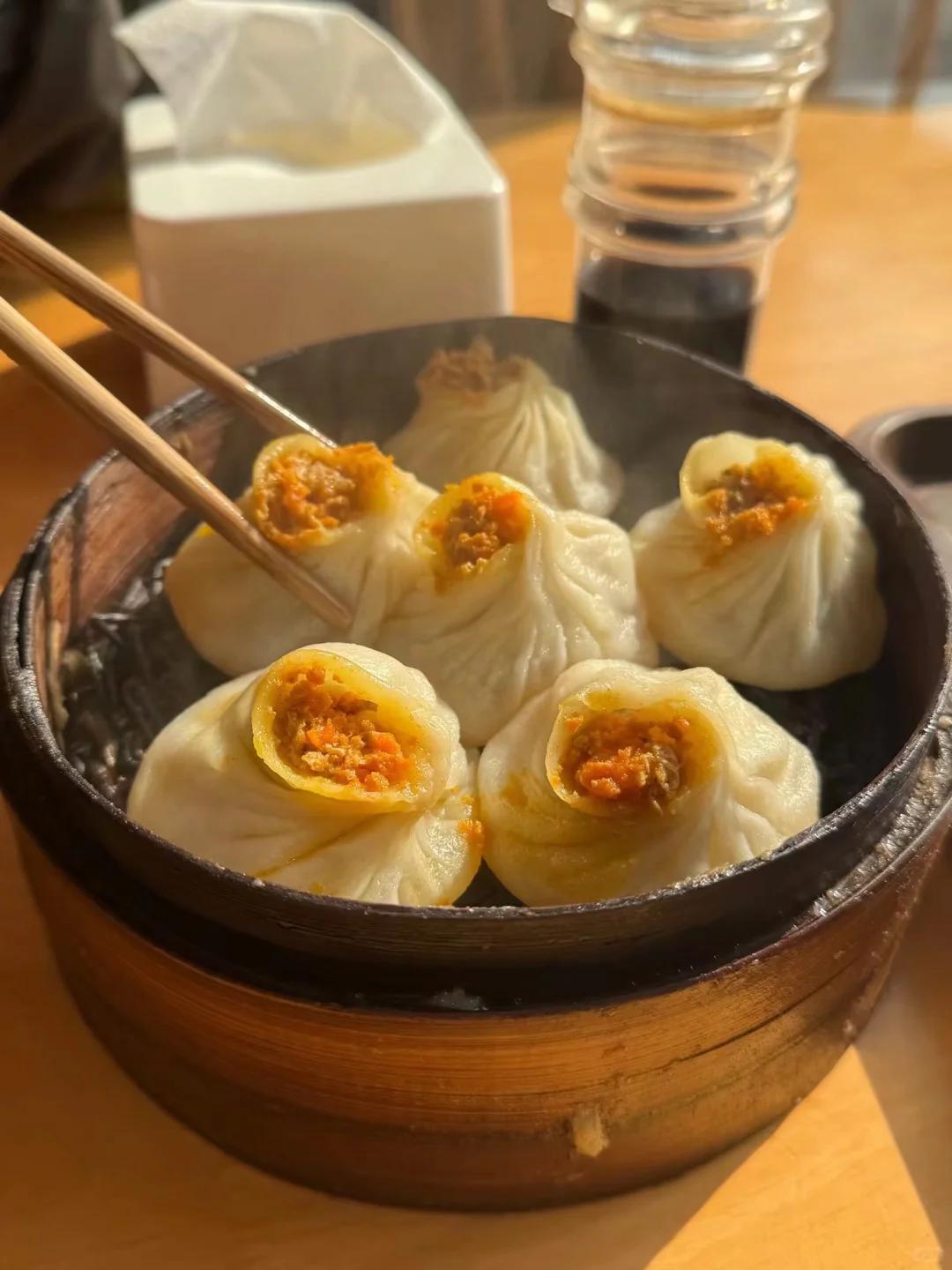 尤其是顶黄小笼包最为出名,蟹黄饱满油亮,肉馅咸鲜可口,吃起来很是满足。