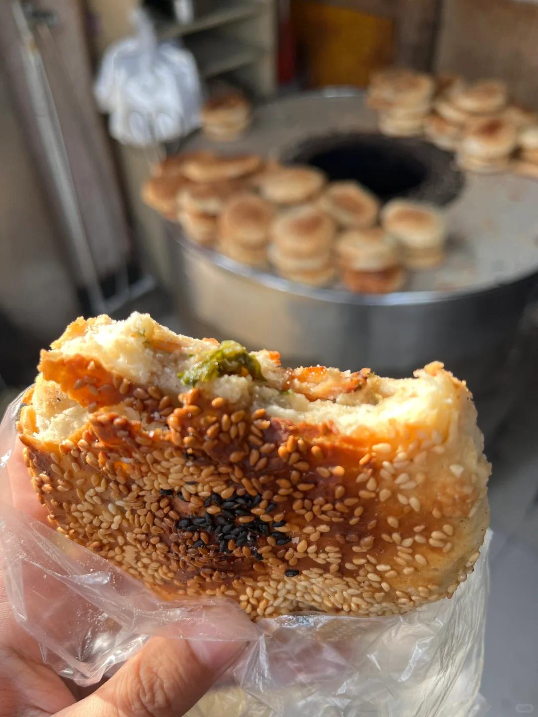 麻糕网红店铺,吃起来跟烧饼一样,推荐芹菜味道的更好吃。