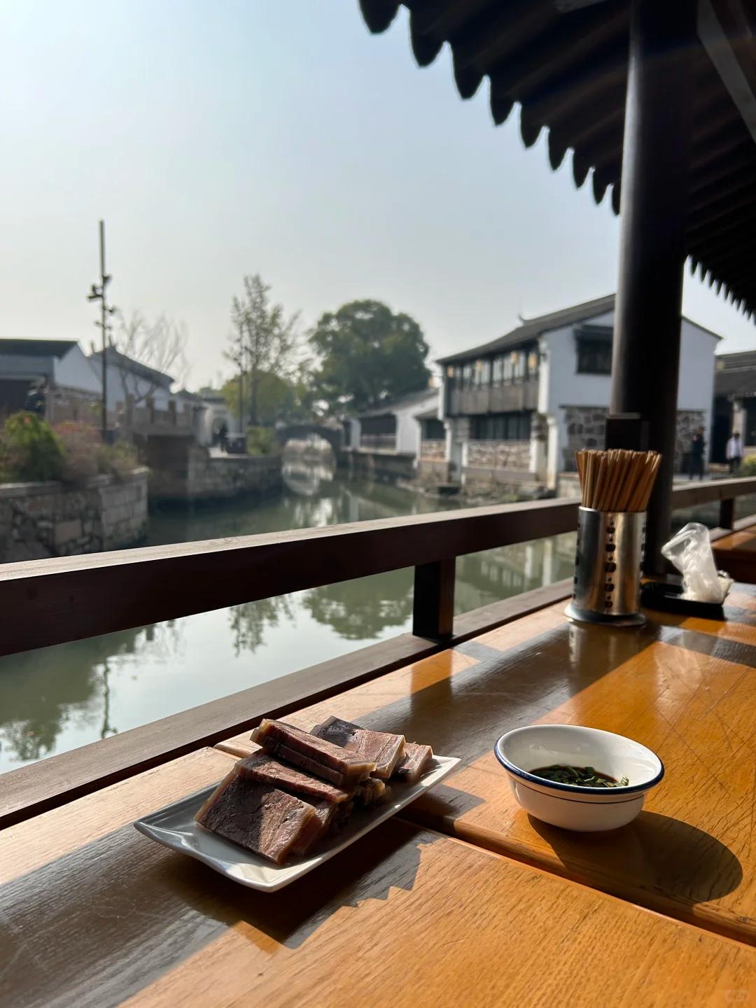 一路走走逛逛,吃口巷头的韭菜饼子,喝碗热乎的焦溪羊汤,穿过苔痕斑驳的老屋,逗逗伸着懒腰的猫咪……没有拥挤和喧嚣,只有水乡最为原本的模样。