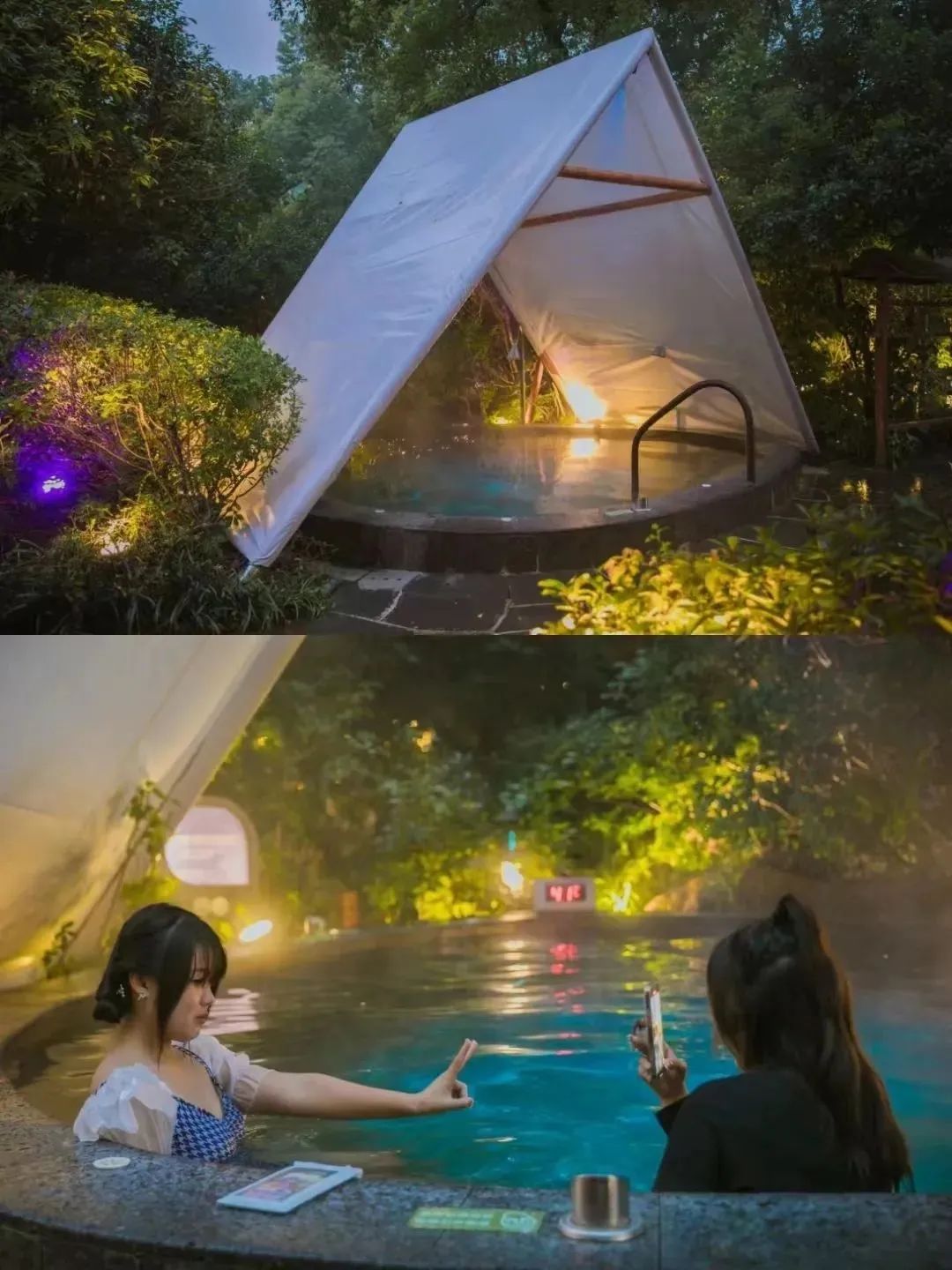 你可以浸润在热气氤氲的池水间,喝一杯清茶,吃些水果零食,和好友闲话二三,就在不知不觉间松懈了下来。