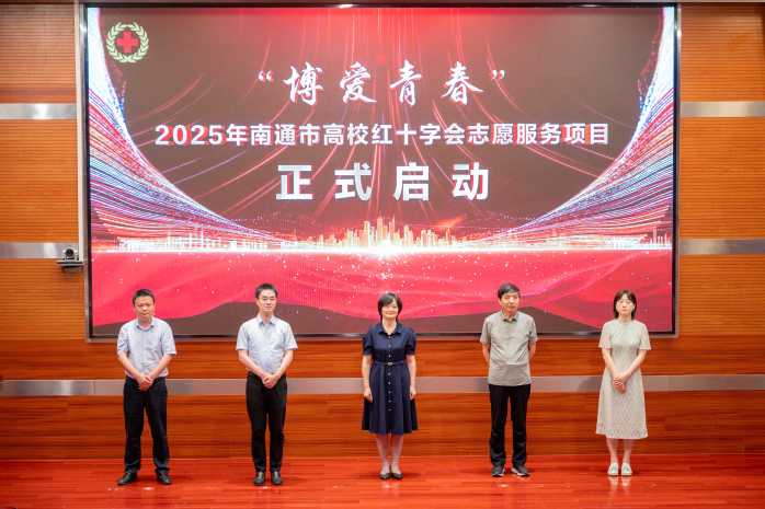 6月27日下午,由南通市红十字会、南通市委社工部、南通市教育局、南通市卫健委、南通团市委联合主办,我校承办的2025年南通市高校红十字会“博爱青春”暑期志愿服务项目启动仪式暨南通市红十字青年网络成立仪式在我校举行。江苏省红十字会党组成员、秘书长林凤勇,东亚红十字青年网络委员会主席、中国红十字青年网络主席侯东岳出席仪式并讲话。南通市红十字会党组书记、常务副会长彭晓红为南通市红十字青年网络授牌。彭晓红,南通市委社会工作部社工人才和志愿服务处处长石卉,南通市教育局党组成员、副局长杨立荣,共青团南通市委副书记朱元星,南通市卫生健康委团委书记顾湘共同按下2025年南通市高校红十字会“博爱青春”暑期志愿服务项目启动键。