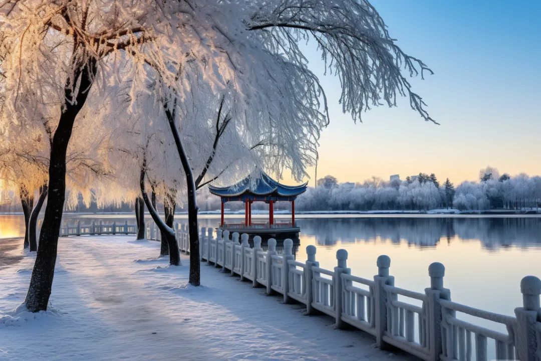 南湖公园,长春的一颗璀璨明珠,是目前全国第二大的市内公园,公园内湖水清澈,植被繁茂葱郁,古色古香的廊桥楼阁错落其中,一年四季风光各异,到了冬天,硕大的湖面就变成了冰雪乐园,有冰雕,雪雕,还有冰雪运动,有趣又好玩~