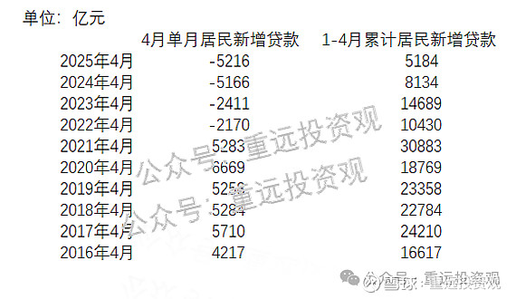 可以看到,刚过去的4月份,居民新增贷款为-5216亿,是近十年的最低值;1月到4月的累计新增贷款,为5184亿,和去年的累计值8134亿相比再次下跌30%以上。