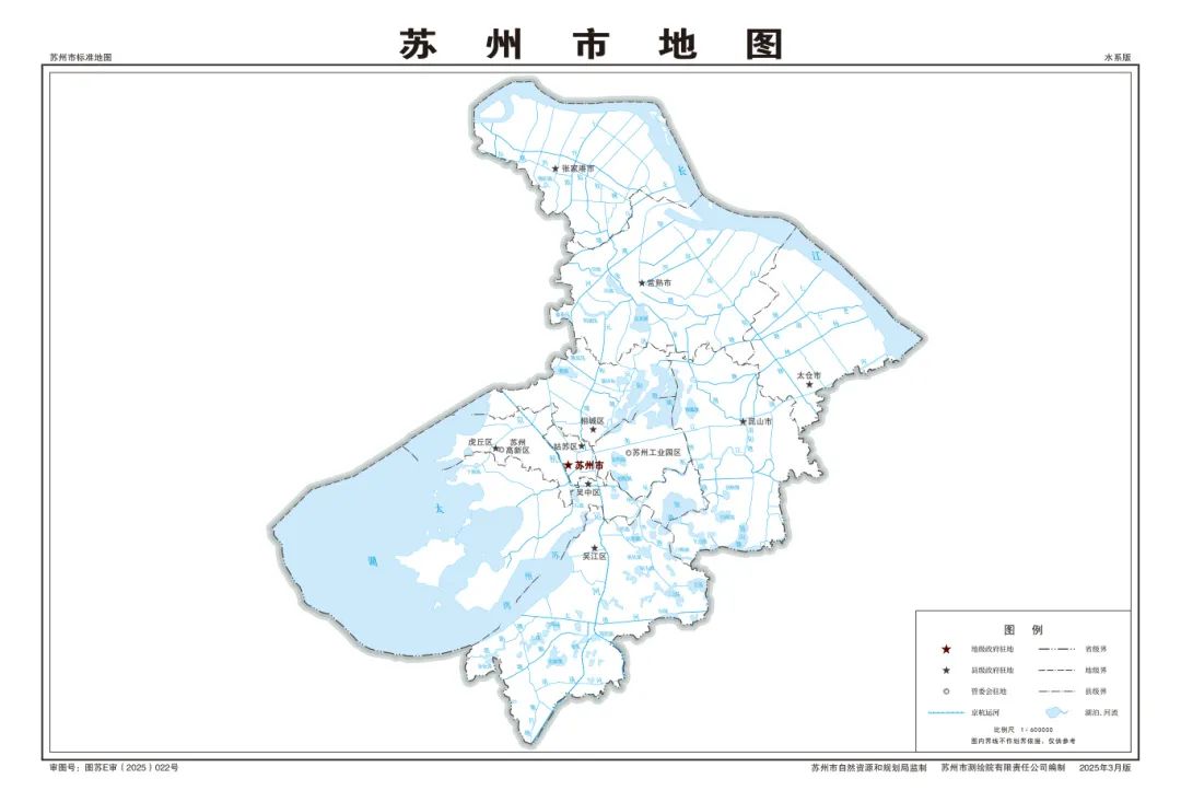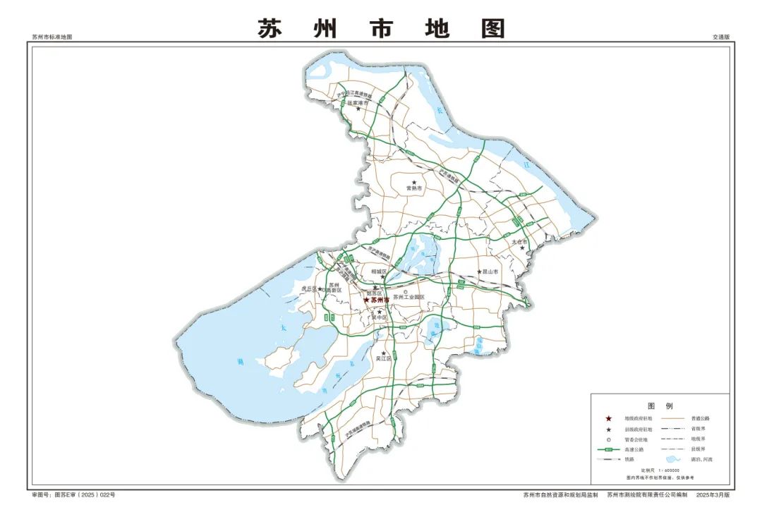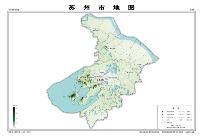 2025版《苏州市标准地图》发布包含苏州市域及下辖10个区(市)的45张标准地图,在上一版基础上,新增了苏州市邻域版及交通、水系、地势专题版。