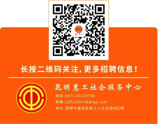 本公告最终解释权归昆明惠工社会服务中心所有,后续招聘相关信息,敬请关注“昆明惠工中心”微信公众号。