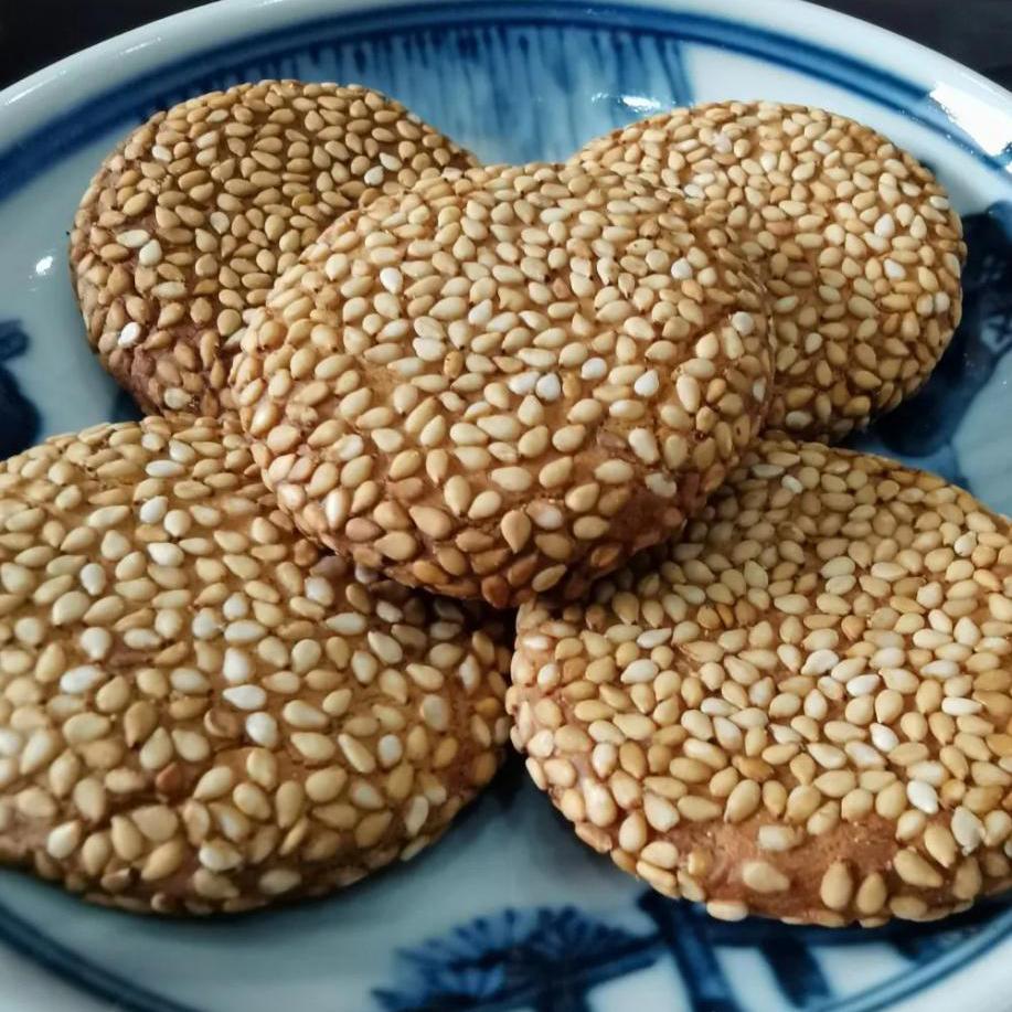 状如铜钱的芝麻铜钿饼,是江南地区过年时招待客人的必备。饼硬币大小,圆形,呈焦黄色,就像古铜币(金华人称铜钱叫“铜钿”),在碟子里高高地摞上一堆,祝福来年发财,主客皆大欢喜!
