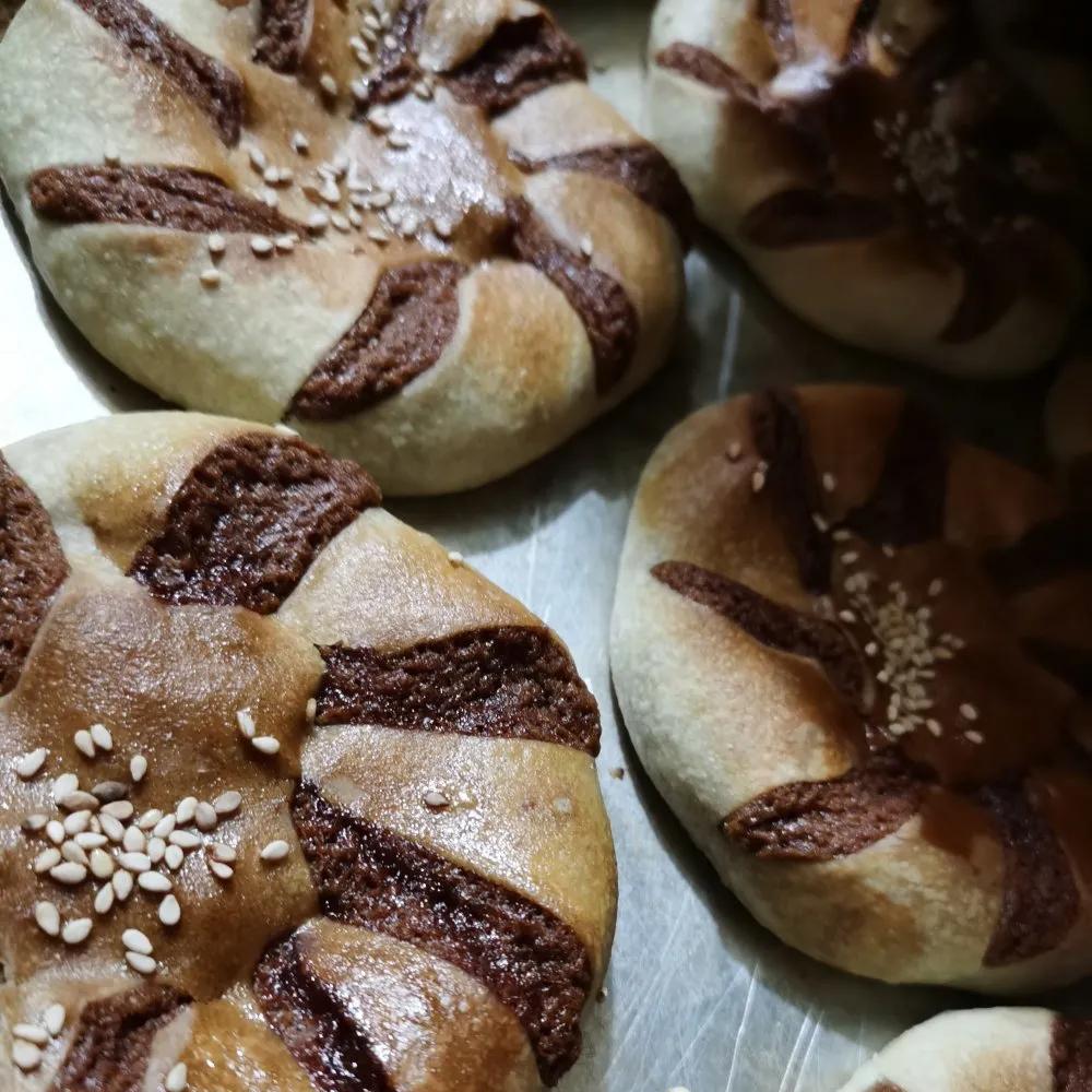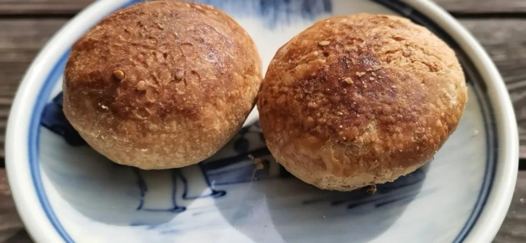 咸烧饼作为上虞特产已有百余年的历史,相传上虞科举考生常以咸烧饼作为赶考途中充饥的干粮,瞧这咸烧饼滚滚圆,馅料如此之足,想必吃了能讨中状元的彩头吧。