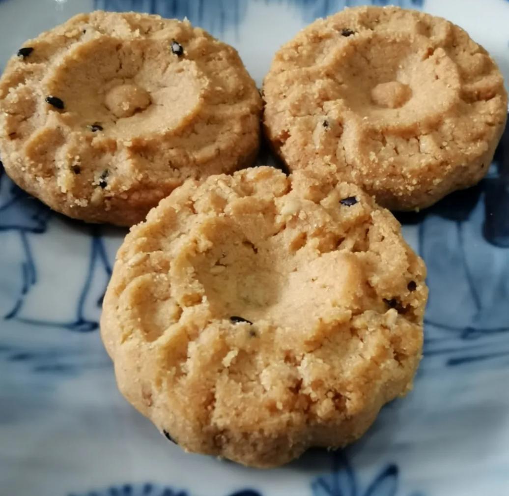 旧时称做古饭糕,寓意“步步高”。老一辈的上虞人大都爱吃这个甜点。以前的古饭糕是用油纸包的,记得小的时候,过年过节去长辈家里玩,都会尝到这桃酥饼呢。