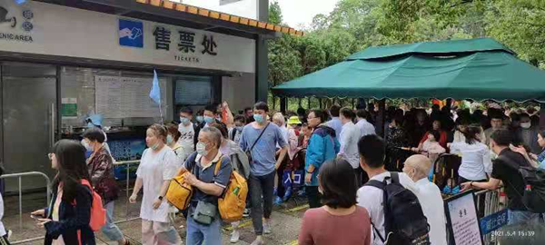 游客在两江四湖·象山景区售票处排队买票(央广网发 桂林市文化广电和旅游局供图)