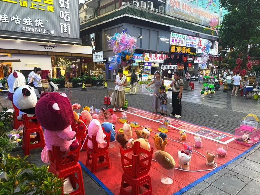 中心广场附近的正阳步行街和社公巷夜市紧邻,犹如藏匿在闹市里的宝藏天地。每家摊位都演绎着独特的“美食哲学”,更妙的是中心广场里的游戏摊位,让大人小孩都乐在其中,仿佛能触摸到最纯真的童年光影。